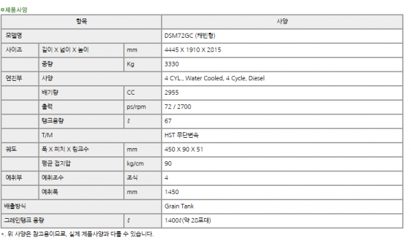 | 제조사 | 대동 | 모델명 | DSM72G | 규격 | 4조식 산물형 |