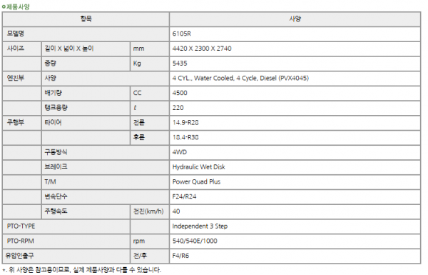 | 제조사 | 존디어 | 모델명 | 6105R | 규격 | 100-109hp |