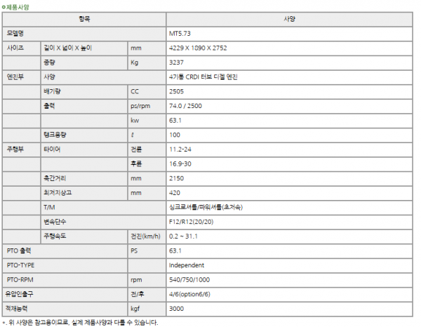 | 제조사 | LS | 모델명 | MT5.73 | 규격 | 70-79hp |