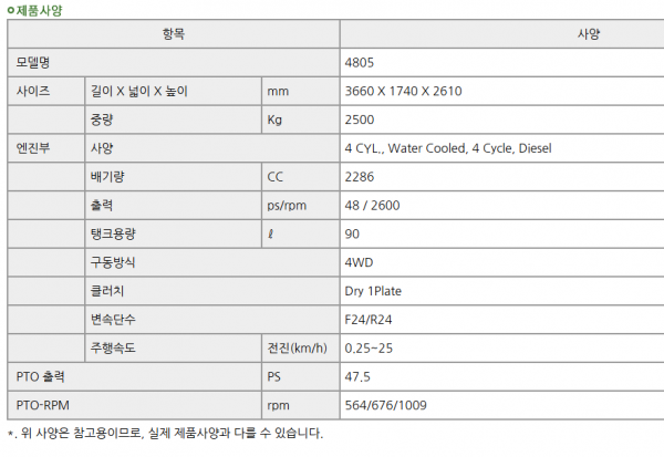 | 제조사 | 국제 | 모델명 | 4805 | 규격 | 48마력 |