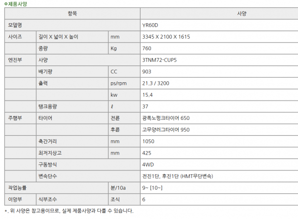 | 제조사 | 얀마 | 모델명 | YR60D | 규격 | 6조식 |
