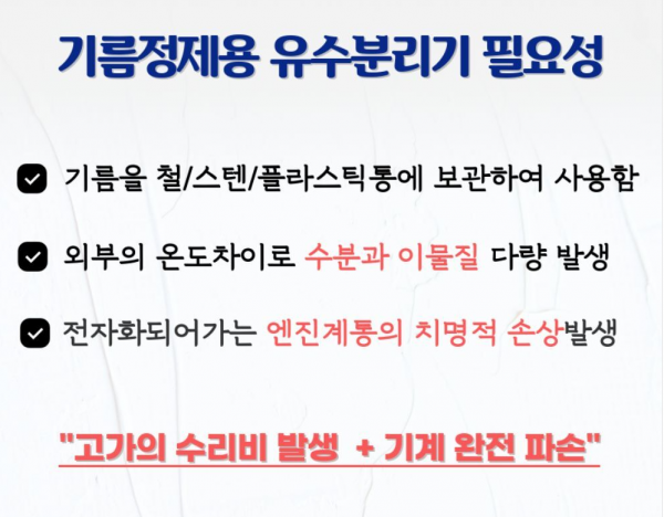 기름통을 보관하고 사용하다보면 어쩔 수 없이 수분과 이물질이 생길 수 밖에 없습니다.