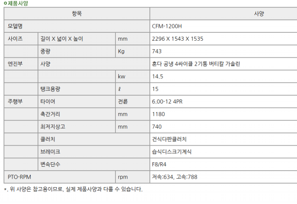 | 제조사 | 아세아 | 모델명 | CFM-1200 | 규격 | 20마력 |
