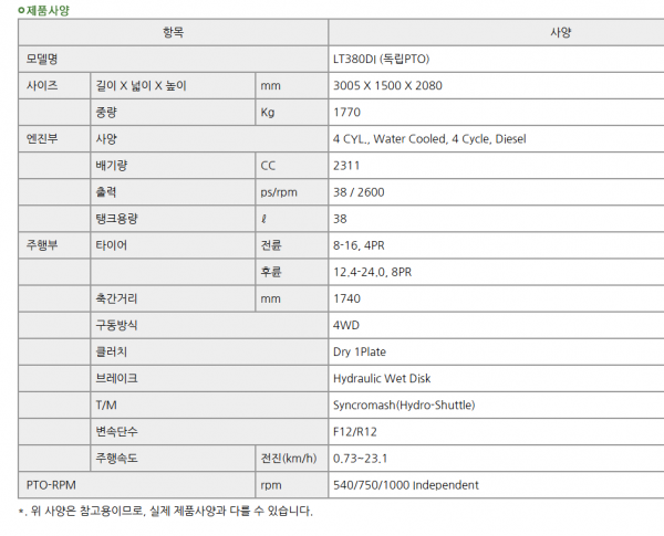 | 제조사 | LS | 모델명 | LT380D | 규격 | 38마력 |