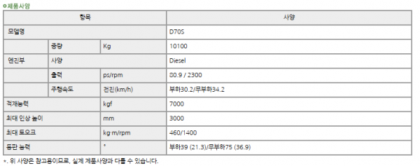 | 제조사 | 두산대우 7톤 | 모델명 | D70S | 규격 | 규격문의 |
