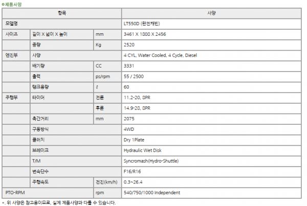 | 제조사 | LS | 모델명 | LT550D | 규격 | 50-59hp |
