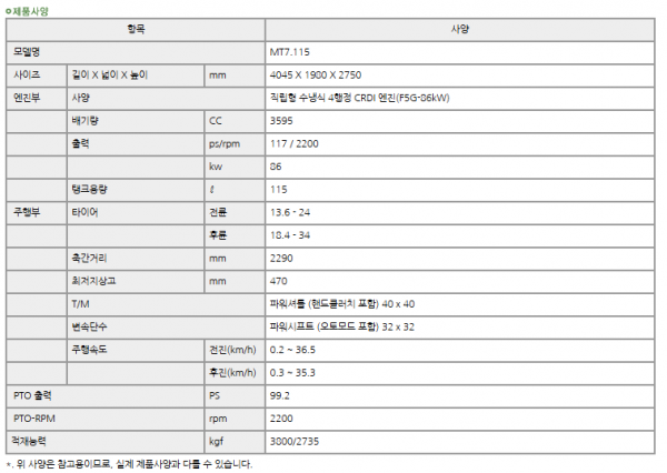 | 제조사 | LS | 모델명 | MT7.115 | 규격 | 110-119hp |