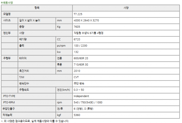 | 제조사 | 뉴홀랜드 | 모델명 | T7.225 | 규격 | 180-189hp |
