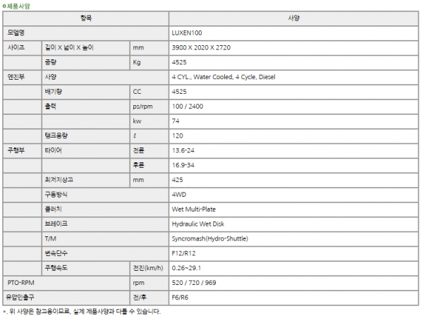 | 제조사 | 국제 | 모델명 | LUXEN100 | 규격 | 100-109hp |