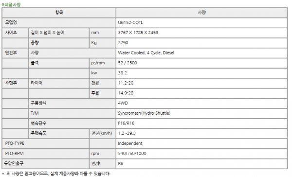 | 제조사 | LS | 모델명 | U6152 | 규격 | 50-59hp |