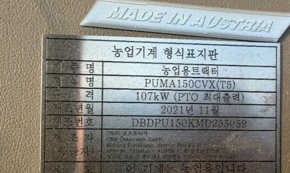 | 제조사 | 케이스 | 모델명 | CASE PUMA | 규격 | 150-159hp |