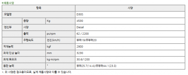 | 제조사 | 두산 | 모델명 | 중고 D30S-5 디젤 3톤 힌지드 | 규격 | 규격문의 |