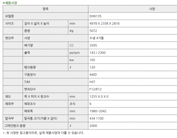 | 제조사 | 대동 | 모델명 | DH6135A | 규격 | 6조식 |