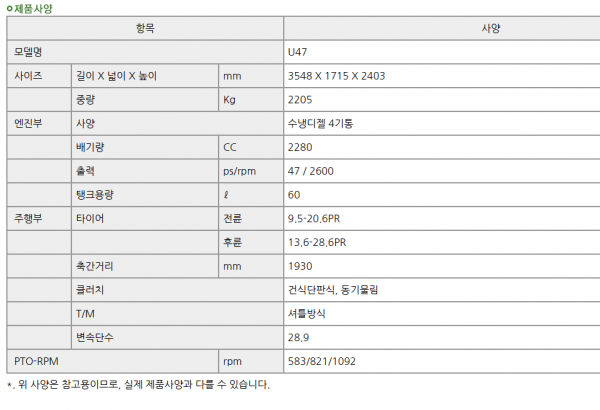 | 제조사 | LS | 모델명 | U47 | 규격 | 47마력 |