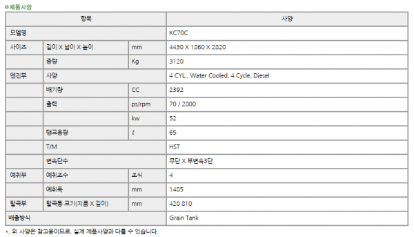 국제/콤바인/4조식 산물형/KC70/2021년식전남 / 장흥