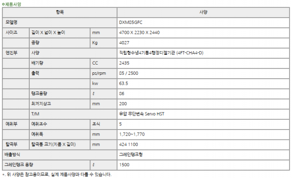 | 제조사 | 대동 | 모델명 | DXM85 | 규격 | 5조식 (산물형) |