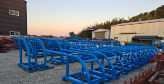 고 하중을 받는 부근에 73Ø × 4.2t × L1,200 인발 파이프를 넣어 보강 후 밴딩해 튼튼합니다.