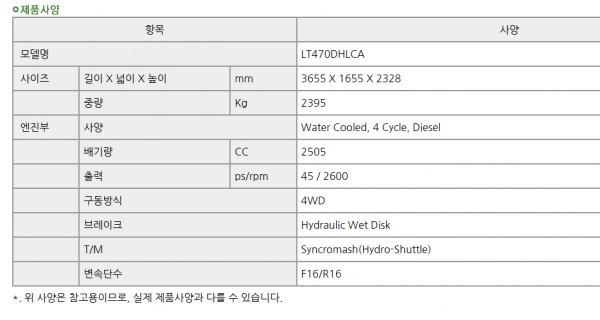 | 제조사 | LS | 모델명 | LT47 | 규격 | 47마력 |
