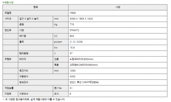 | 제조사 | 얀마 | 모델명 | YR6DZ | 규격 | 6조식 승용 |