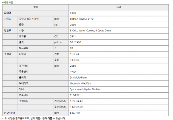 | 제조사 | 존디어 | 모델명 | 5300 | 규격 | 50-59hp |