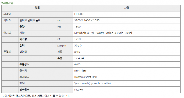 | 제조사 | LS | 모델명 | LT360D | 규격 | 30-39hp |