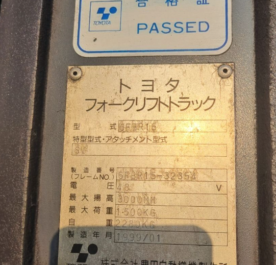 도요타/지게차/규격문의/6FBR15/2000년식이전인천 / 부평구