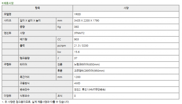 | 제조사 | 얀마 | 모델명 | YR8DZAG | 규격 | 8조식 승용 |