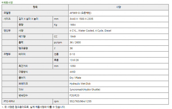 | 제조사 | 국제 | 모델명 | AF365 | 규격 | 30-39hp |