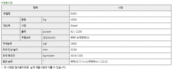 | 제조사 | 두산 | 모델명 | LD30S-2 | 규격 | 규격문의 |