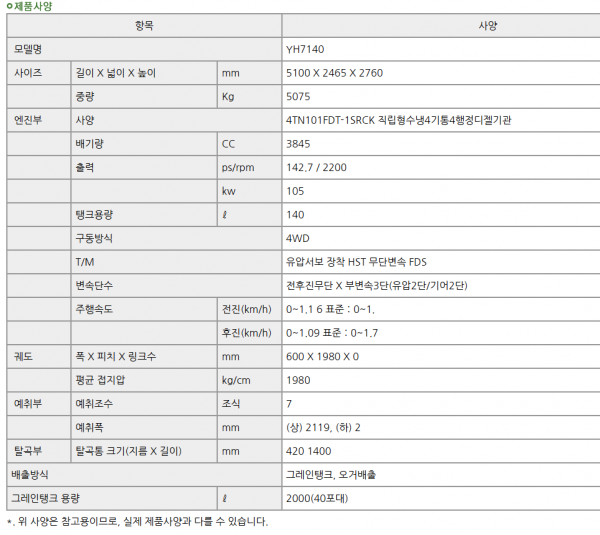 | 제조사 | 얀마 | 모델명 | YH7140 | 규격 | 7조식 |
