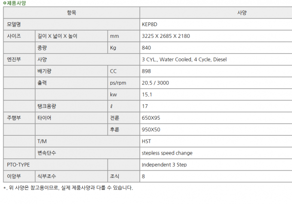 | 제조사 | 구보다 | 모델명 | KEP8D | 규격 | 8조식 |