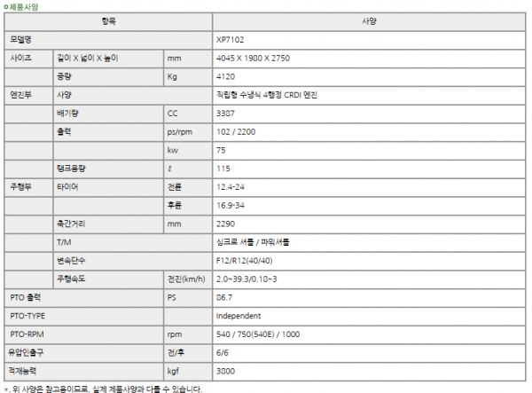 | 제조사 | LS | 모델명 | XP7102 | 규격 | 100-109hp |