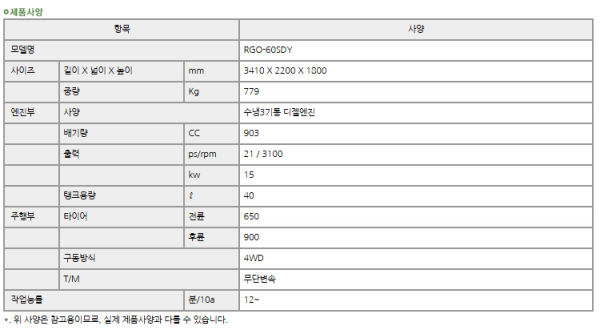 | 제조사 | 국제 | 모델명 | RGO-60SDY | 규격 | 6조식 승용 |